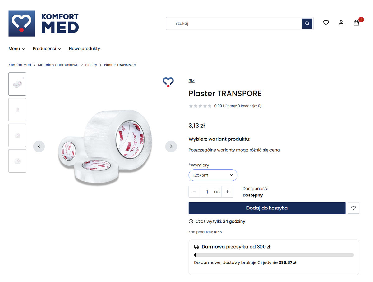 KomfortMed.pl to sklep medyczny zaprojektowany z myślą o odbiorcy B2B, dla którego liczy się przede wszystkim czytelność, powtarzalność i poczucie kontroli nad zakupem. Projekt świadomie rezygnuje z lifestyle’owych zdjęć i emocjonalnych narracji na rzecz uporządkowanej struktury, neutralnej kolorystyki i czystych packshotów produktów. Taki kierunek graficzny wzmacnia profesjonalny charakter marki i jasno komunikuje, że jest to narzędzie do codziennej pracy, a nie sklep oparty na impulsach.